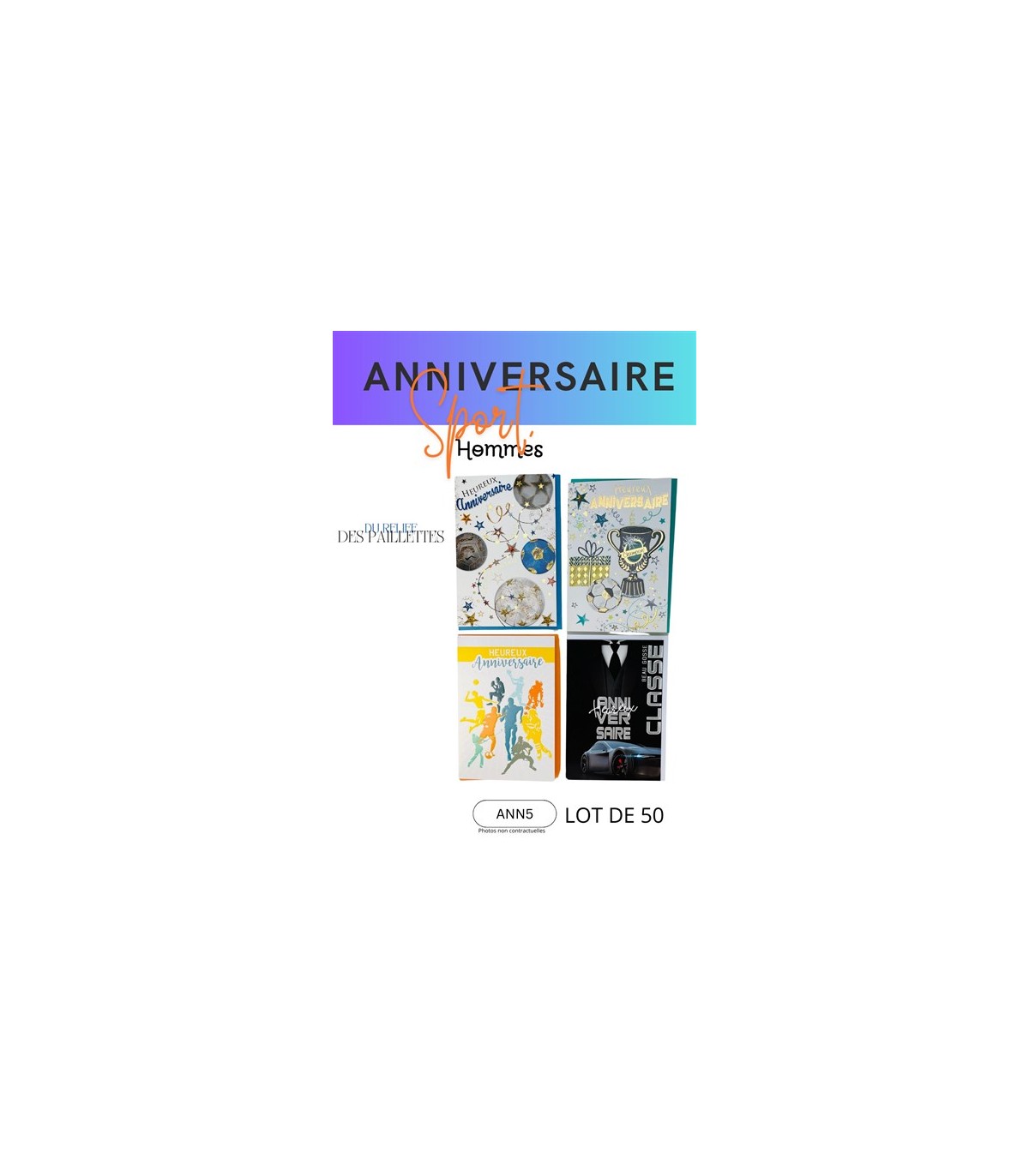 LOT 50 CARTES ANNIVERSAIRE HOMMES SPORTS ASS