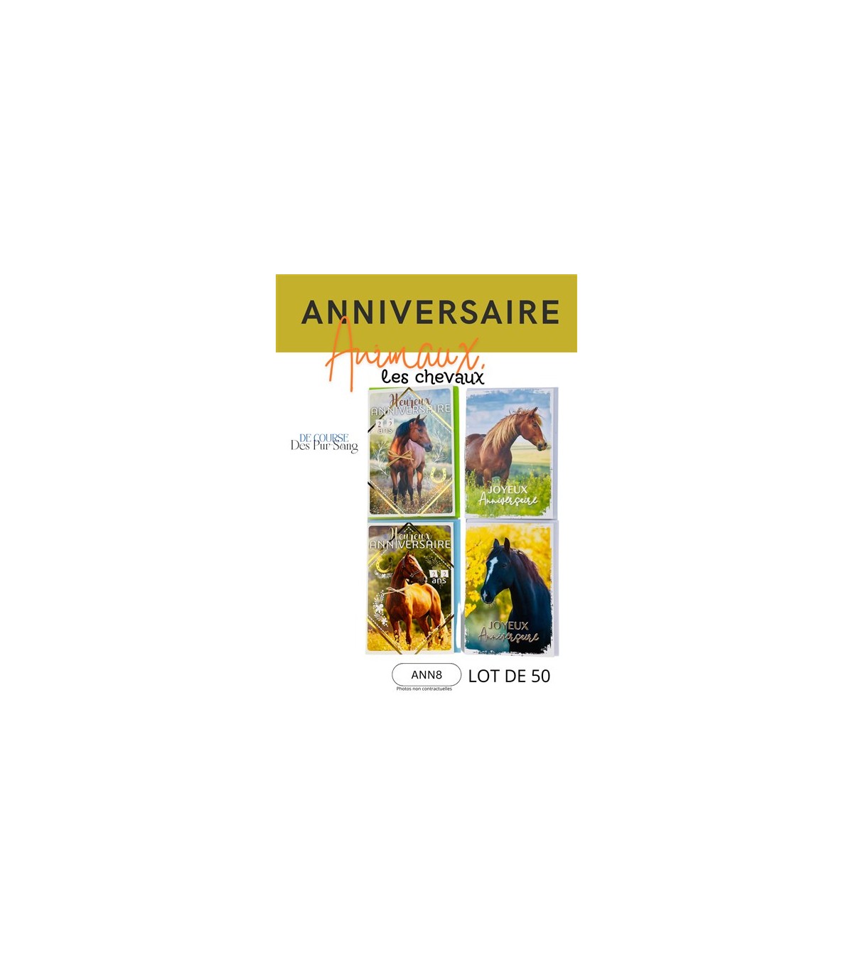 LOT 50 CARTES ANNIVERSAIRE CHEVAUX ASS